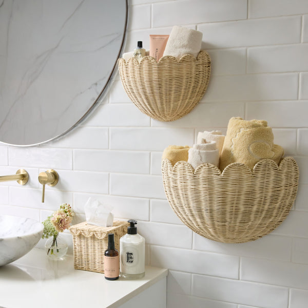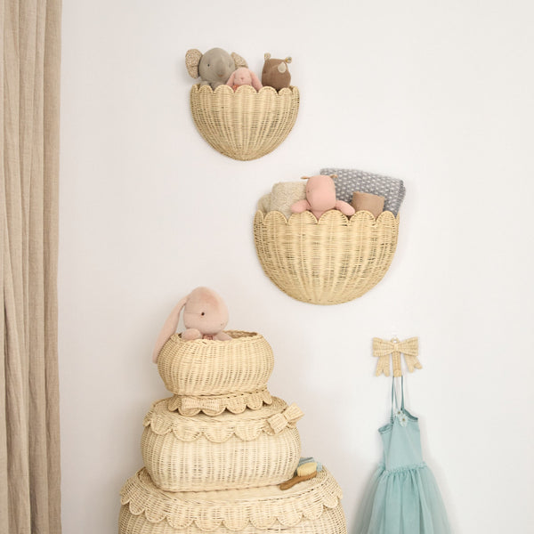The Original Lola Scalloped Wall Basket comes in a set of two, designed to bring both storage and beauty into everyday spaces. This elegant design reflects the signature craftsmanship BEBE BASK is known for, produced in small batches using superior materials for lasting quality, never mass produced. Lola offers endless creative ways to bring thoughtful storage to nurseries, kids’ rooms, entryways, and beyond.
