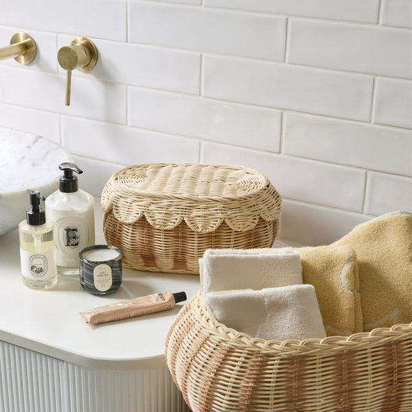 Style them on shelves, dressers, countertops, or in a nursery, bedroom, or living space to elevate storage without sacrificing beauty. Handwoven from premium natural rattan, Flora in Stripey is made to grow with your home and remain beautiful for years to come.